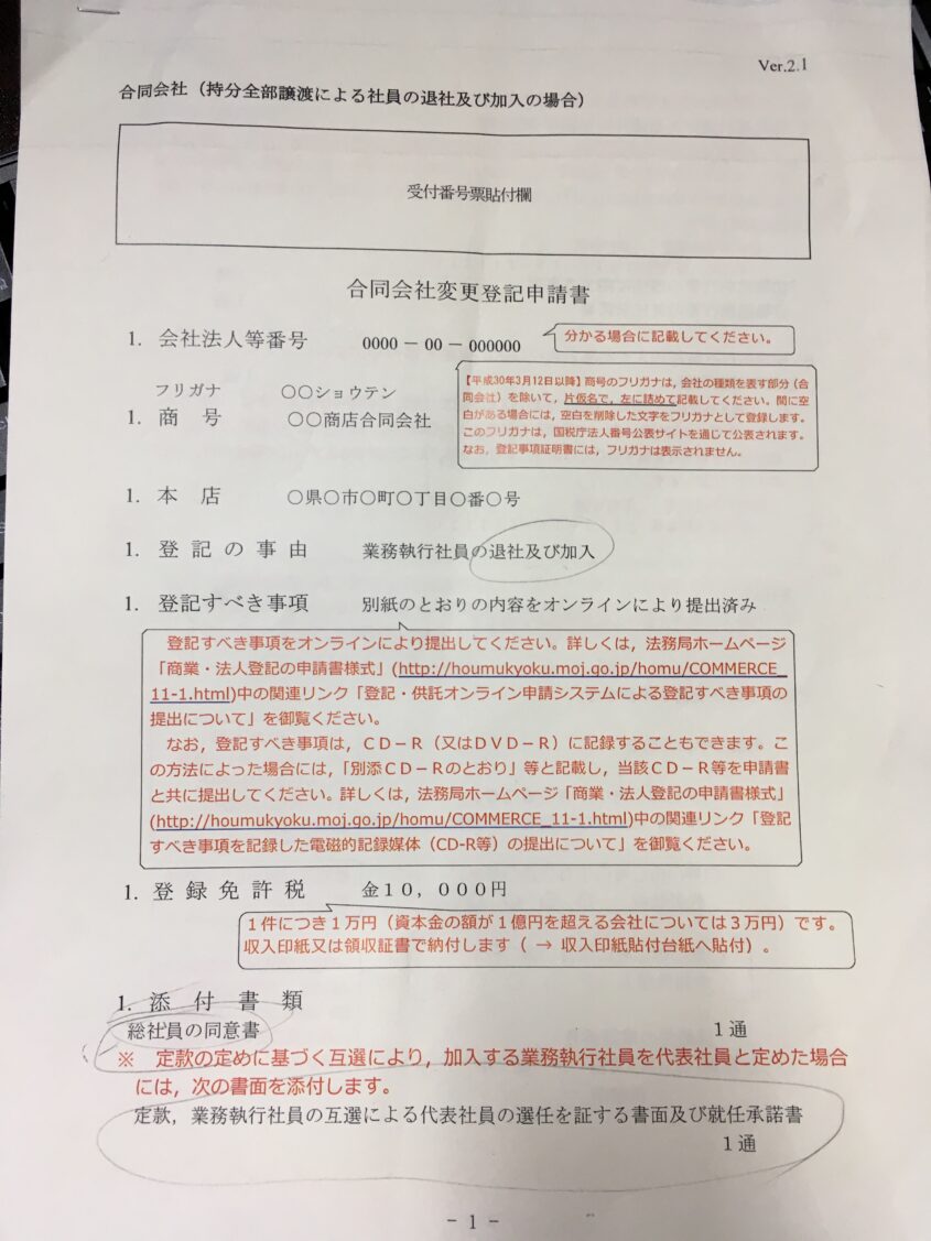 創業時に妻を業務執行社員として登記するか悩んだ結果、できるだけ実態に合わせる方針でスルーしましたが、ここにきて経理業務をお願いすることが多くなり、業務実態も出来てきたので業務執行社員(役員)として登録することにしました。